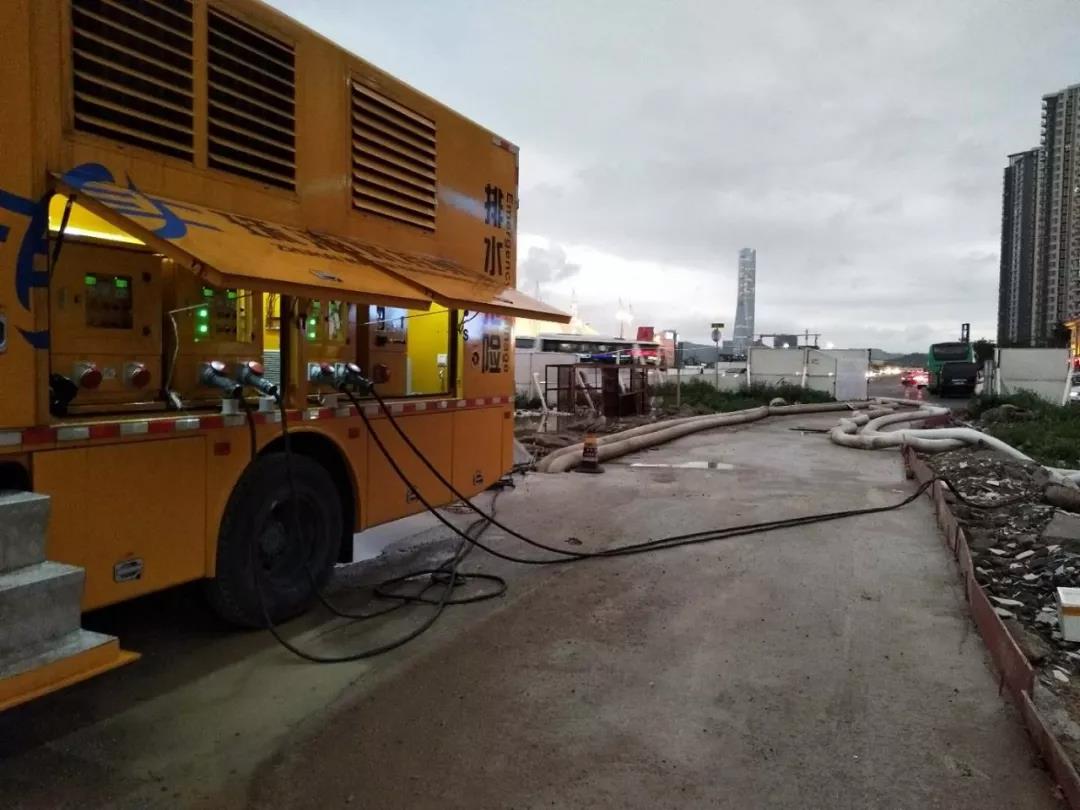 在掌握該情況后,每逢發(fā)布暴雨預(yù)警,管網(wǎng)公司都會第一時間部署強排車輛及班組人員至灣仔水浸點待命。同時,在降雨前工作人員會提前完成水浸黑點周邊雨水篦、雨水渠的清疏工作,降低雨水渠內(nèi)水位,盡量延緩雨水浸沒道路的時間。一旦發(fā)生積水,管網(wǎng)公司會立刻開展強排搶險工作,因地制宜地選擇大型強排設(shè)備,一直保持抽排,直至雨停后將積水排干。江海路和下沙街兩處易澇點的積水時長從原來的12-16小時,縮短到3個小時!管網(wǎng)公司的搶險排澇工作獲得灣仔周邊居民及屬地政府的一致好評。在搶險過程中,灣仔周邊居民及鎮(zhèn)街政府均給予了大力支持。