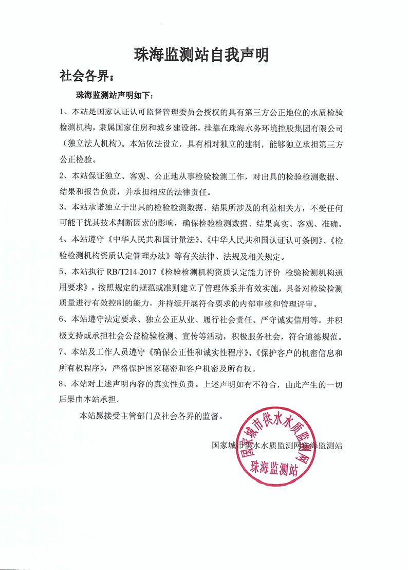 珠海監(jiān)測(cè)站自我聲明